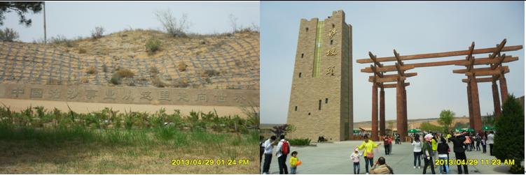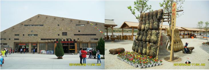 我們?cè)谏称骂^旅游黃河區(qū)(南區(qū))買(mǎi)了門(mén)票,隨著人流,進(jìn)入景區(qū)。景區(qū)主大門(mén)是一個(gè)四四方方的立柱,加上“井”字形建筑造型構(gòu)成,立柱頂部呈長(zhǎng)城烽火臺(tái)垛口造型,立柱右側(cè)上部有三個(gè)鎏金大字“沙坡頭”。 在景區(qū)大門(mén)東側(cè),是沙漠博物館,它的頂部呈金字形造型,游客可以免費(fèi)進(jìn)去參觀。