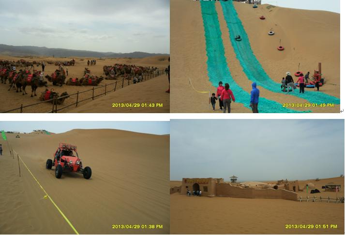 4月29日,吃罷早餐,簡(jiǎn)單準(zhǔn)備,我們登上了去中衛(wèi)的中巴,開(kāi)始了我們的旅程。約一小時(shí)的路程,我們到了中衛(wèi),一下中巴車(chē),馬上就感受到了旅游旺季旅游景點(diǎn)的“熱”。在中衛(wèi)汽車(chē)站,沙坡頭旅游公司工作人員得知我們?nèi)ド称骂^玩,便熱情向我們介紹旅游套餐。各種游玩項(xiàng)目?jī)r(jià)格令人嗔舌,沙坡頭旅游景區(qū)門(mén)票在淡季2元/人,在“五一”小長(zhǎng)假這樣的旺季,立刻飆升到90元/人,寧夏籍的游客憑身份證每人可以享受65元優(yōu)惠價(jià),大部分游玩項(xiàng)目?jī)r(jià)格都在80元/人。