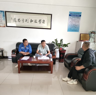 2025年9月20日下午,銀川市生態(tài)環(huán)境局局長牛進頻帶領(lǐng)永寧分局一行來天琛公司考察超低排放改造情況,總經(jīng)理郭冠明、工藝質(zhì)量副總張耀宗、安環(huán)部長孔華全程陪同。